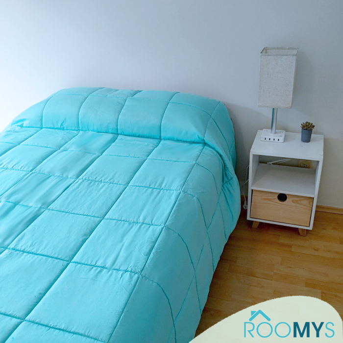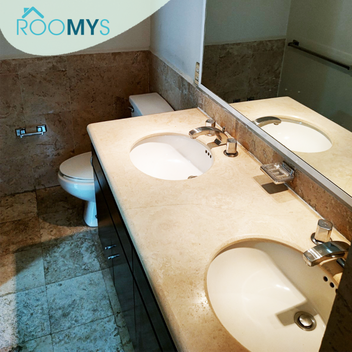 La habitación cuenta con Cama Matrimonial, Clóset con vestidor, Mesita Auxiliar, Escritorio y Baño propio. El departamento esta totalmente amueblado y cuenta con Cocina Integral, Lavadora y Secadora, Sala, Comedor, TV, Horno de Microondas, 3 Baños completos, Internet de Alta Velocidad con 100 Megas.