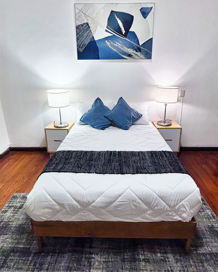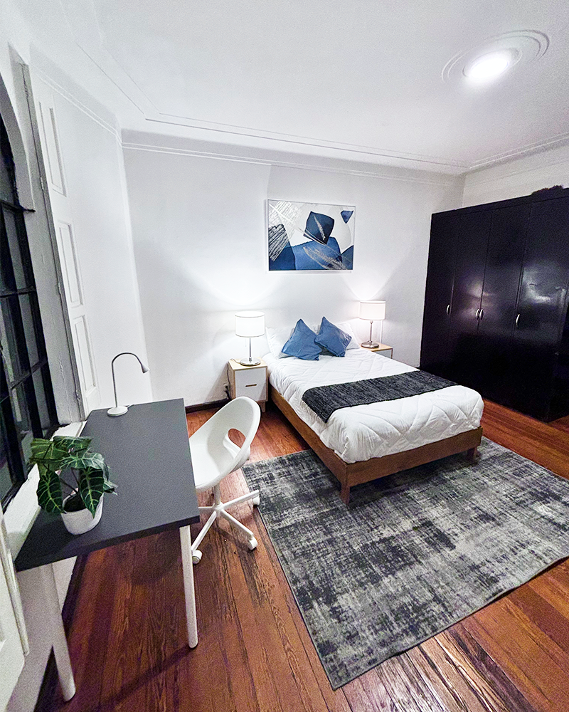 Habitación con Cama Matrimonial Premium, Clóset amplio, Baño compartido. Dentro de una Casa con acabados modernos, totalmente amueblada y ubicado en la mejor zona de la Colonia Condesa.