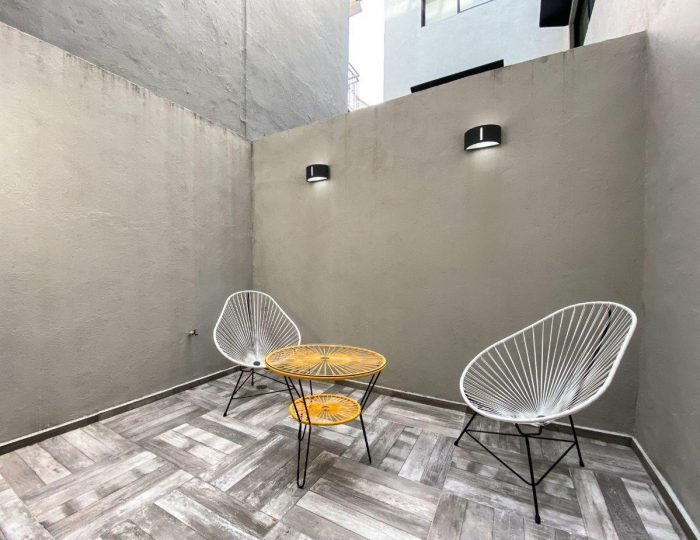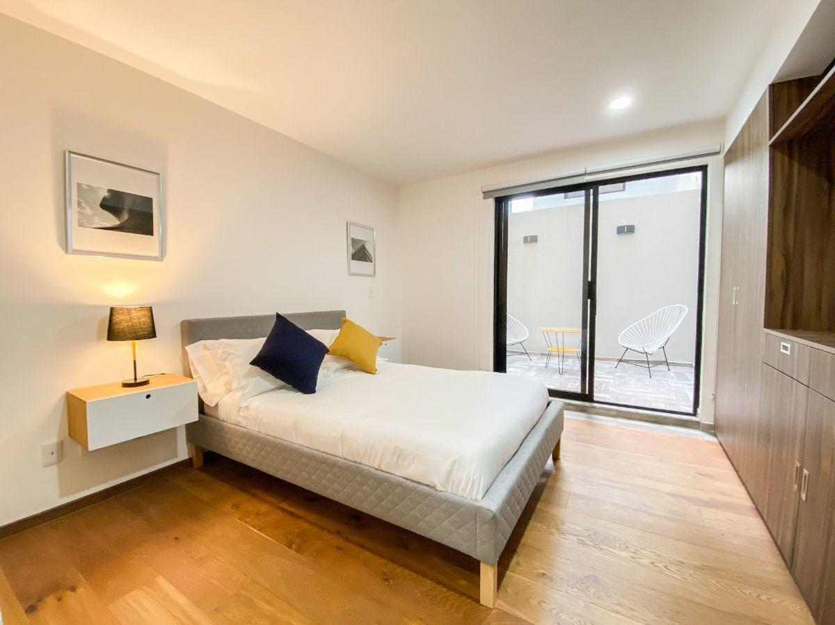 Habitación con Cama Matrimonial, Clóset, Escritorio y Baño propio. Dentro de un departamento con acabados modernos, totalmente amueblado y ubicado en la mejor zona de la Colonia Condesa, a unas calles de Circuito Interior, Metro Patriotismo y Parque México.