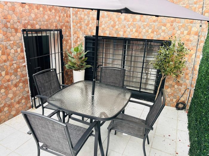 La casa esta totalmente amueblada y cuenta con Cocina Integral, Lavadora y Secadora, Sala, Comedor, TV, Horno de Microondas, 6 Baños, Terraza, Internet de Alta Velocidad con 100 Megas.