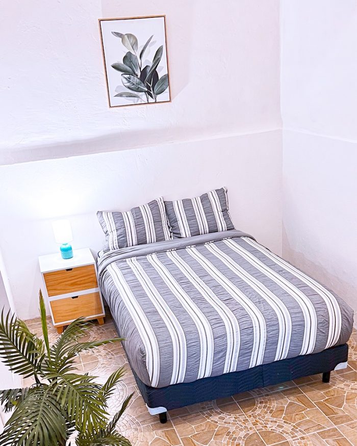 La habitación cuenta con Cama Matrimonial , Clóset 🧥, Mesita Auxiliar, Escritorio 👨💻 y Baño Propio 🚿, además amenidades en la habitación con TV 50 pulgadas 🖥, Microondas, Mini Refrigerador❄️ y parrilla🔥 propios.