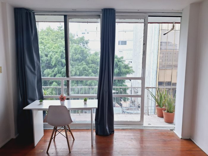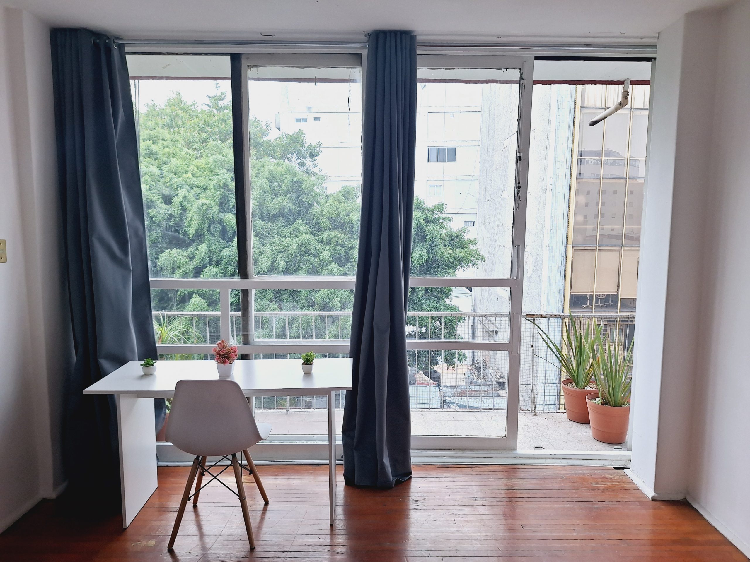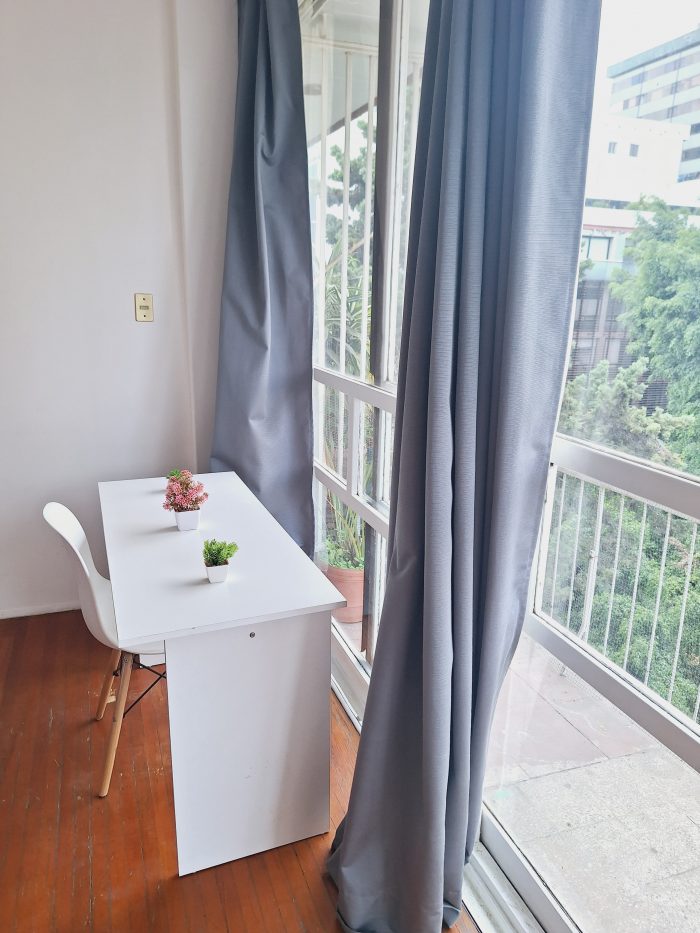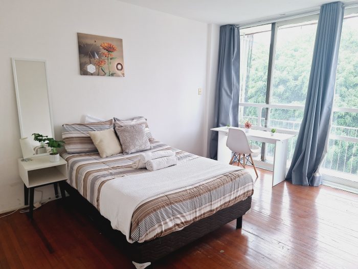 Habitación con Cama Matrimonial, Clóset amplio , Escritorio, Terraza y Baño compartido. Dentro de un departamento con acabados modernos, totalmente amueblado y ubicado en la mejor zona de la Colonia La Condesa, a una calle de Insurgentes y Metro Chilpancingo.