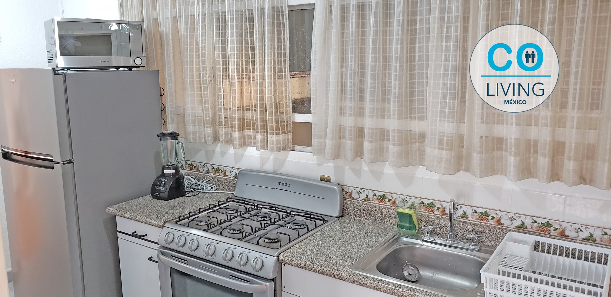 Habitación dentro de un departamento ubicado en la mejor zona de la Colonia Roma Sur, en un edificio moderno y con buenos acabados. Muy bien ubicado, cerca de Insurgentes, Metro Chilpancingo, Parque México.