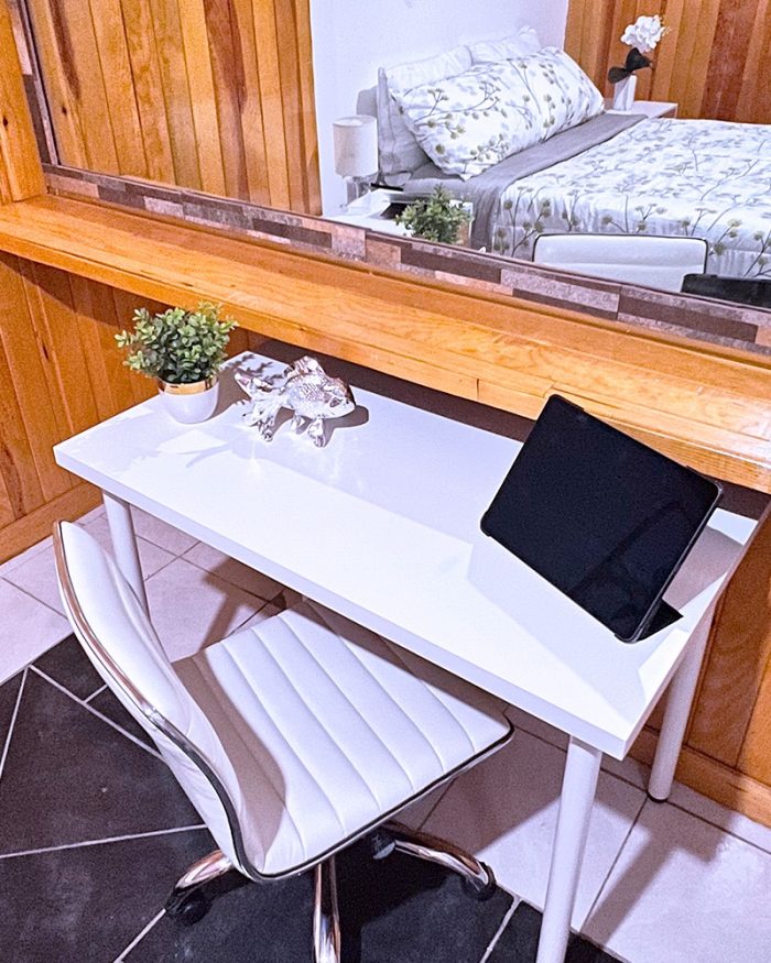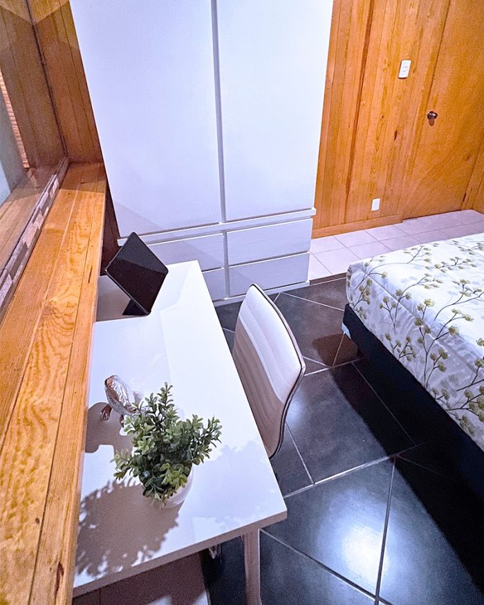 La habitación cuenta con Cama Matrimonial 🛏️, Clóset 🧥, Mesita Auxiliar, Escritorio 👨‍💻 y Baño compartido 🚿.