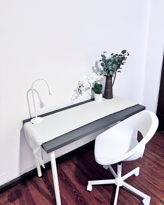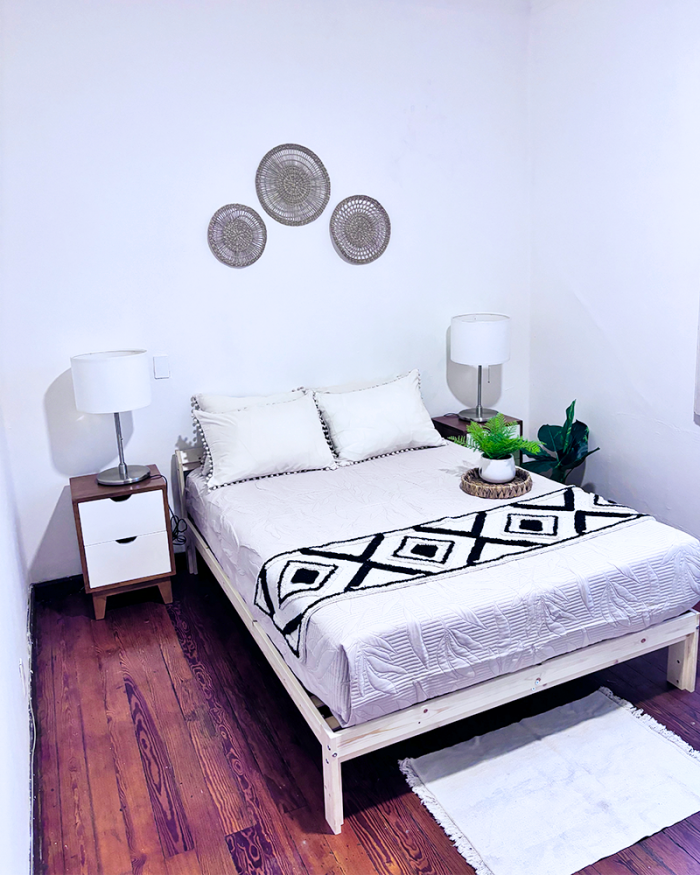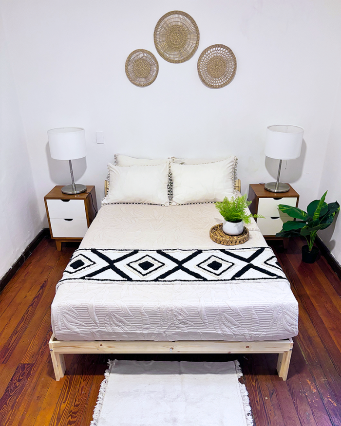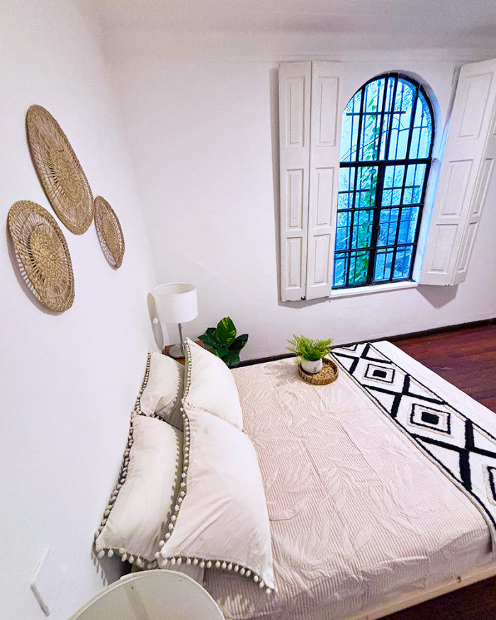 La habitación cuenta con Cama Matrimonial Premium , Clóset 🧥, Mesita Auxiliar, Escritorio 👨💻 y Baño compartido 🚿.