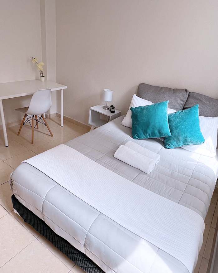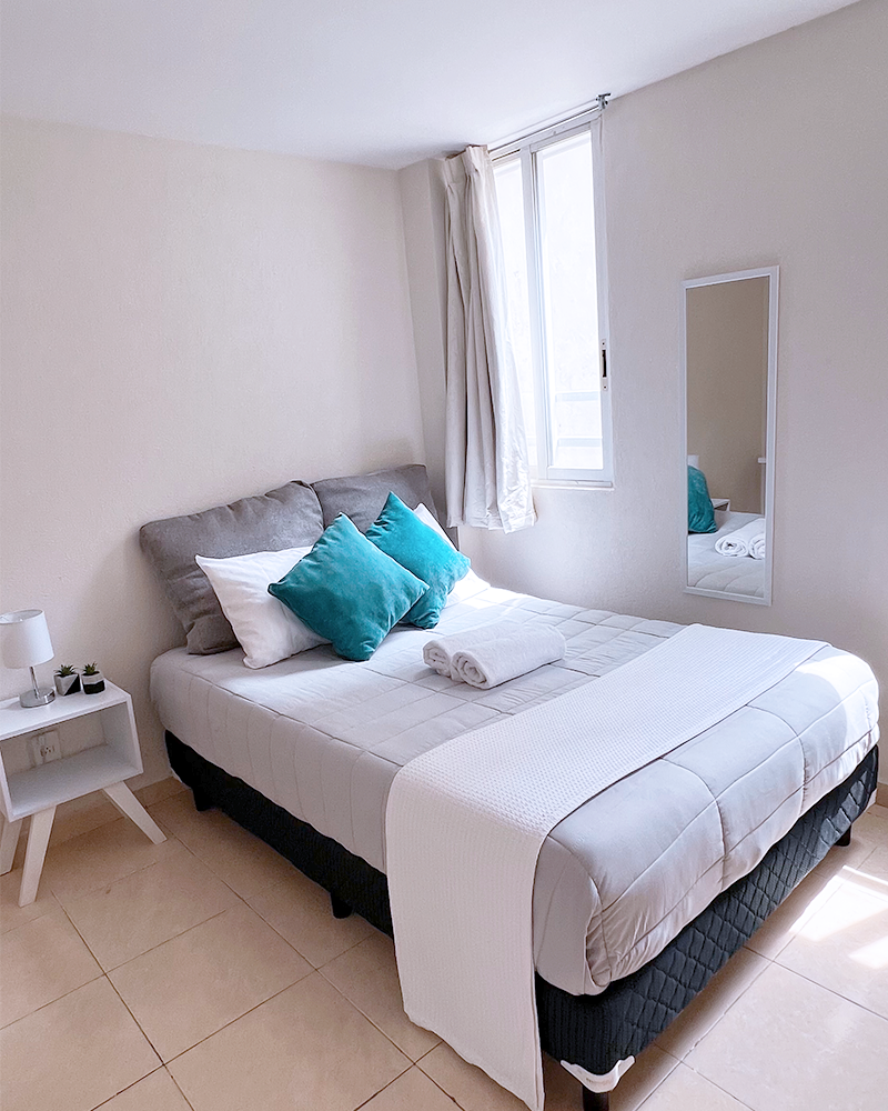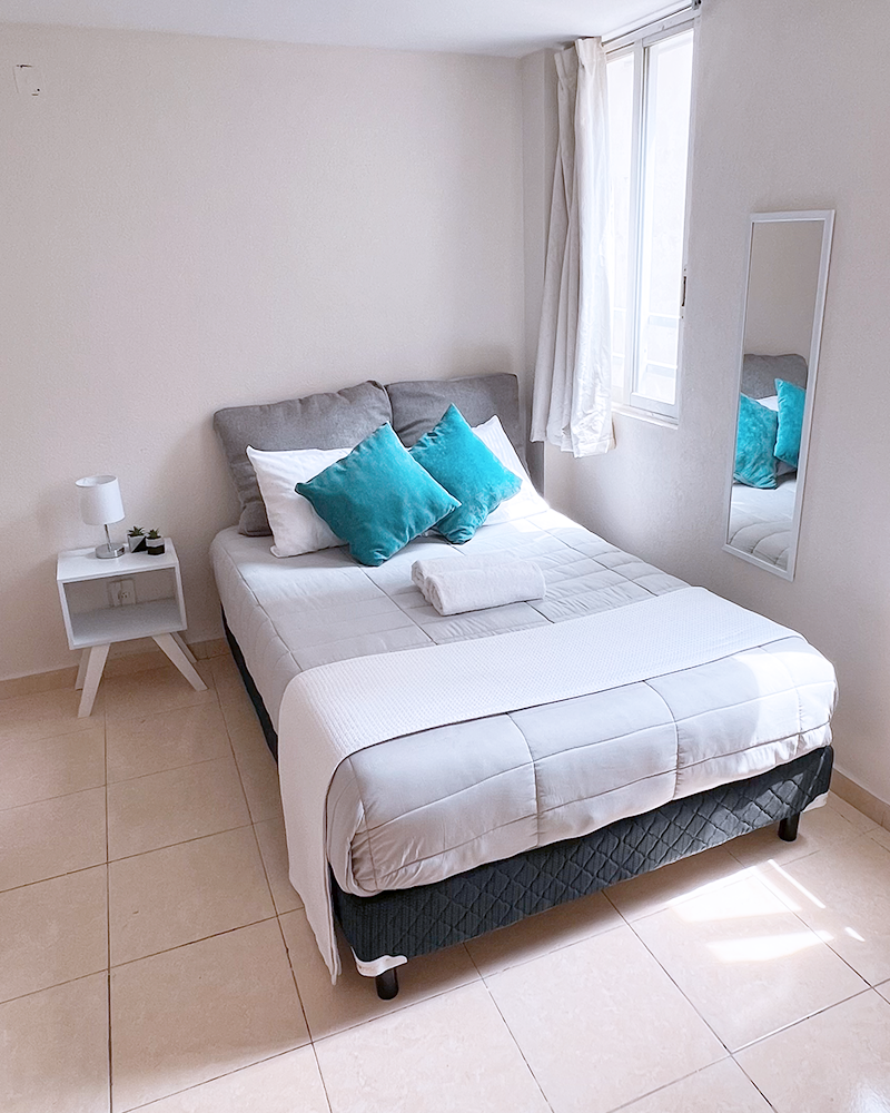La habitación cuenta con Cama Matrimonial , Clóset, Mesita Auxiliar, Escritorio