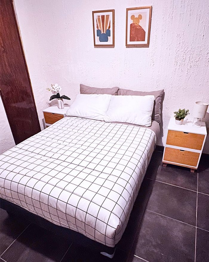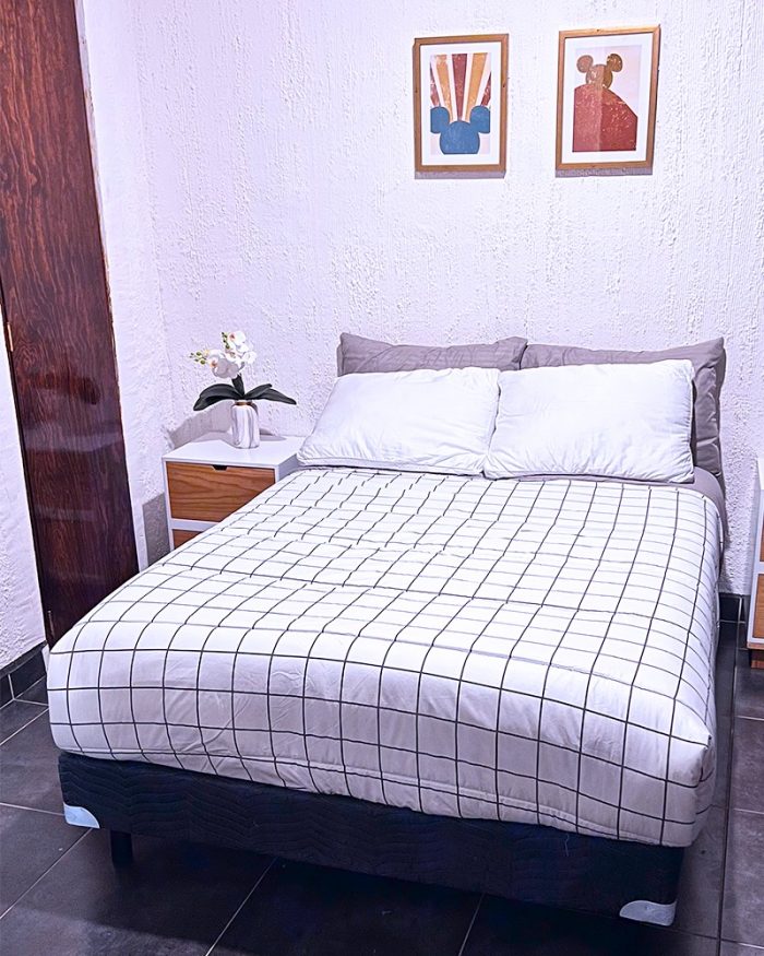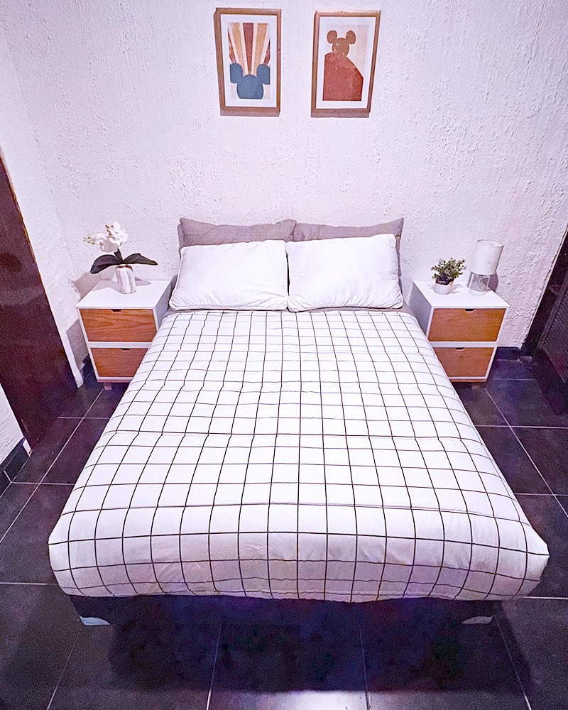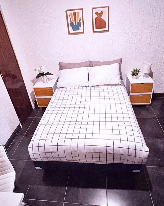 La habitación cuenta con Cama Matrimonial , Clóset 🧥, Mesita Auxiliar, Escritorio 👨💻 y Baño compartido 🚿.