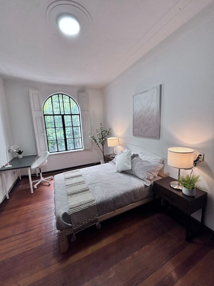 Habitación con Cama Matrimonial, Clóset, Baño compartido. Dentro de una Casa con acabados modernos, totalmente amueblada y ubicado en la mejor zona de la Colonia Condesa.