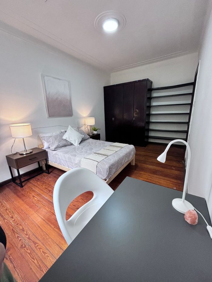 La habitación cuenta con Cama Matrimonial 🛏️, Clóset 🧥, Mesita Auxiliar, Escritorio 👨💻 y Baño compartido 🚿.